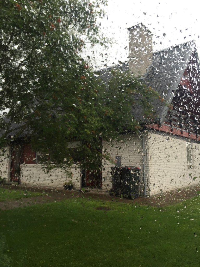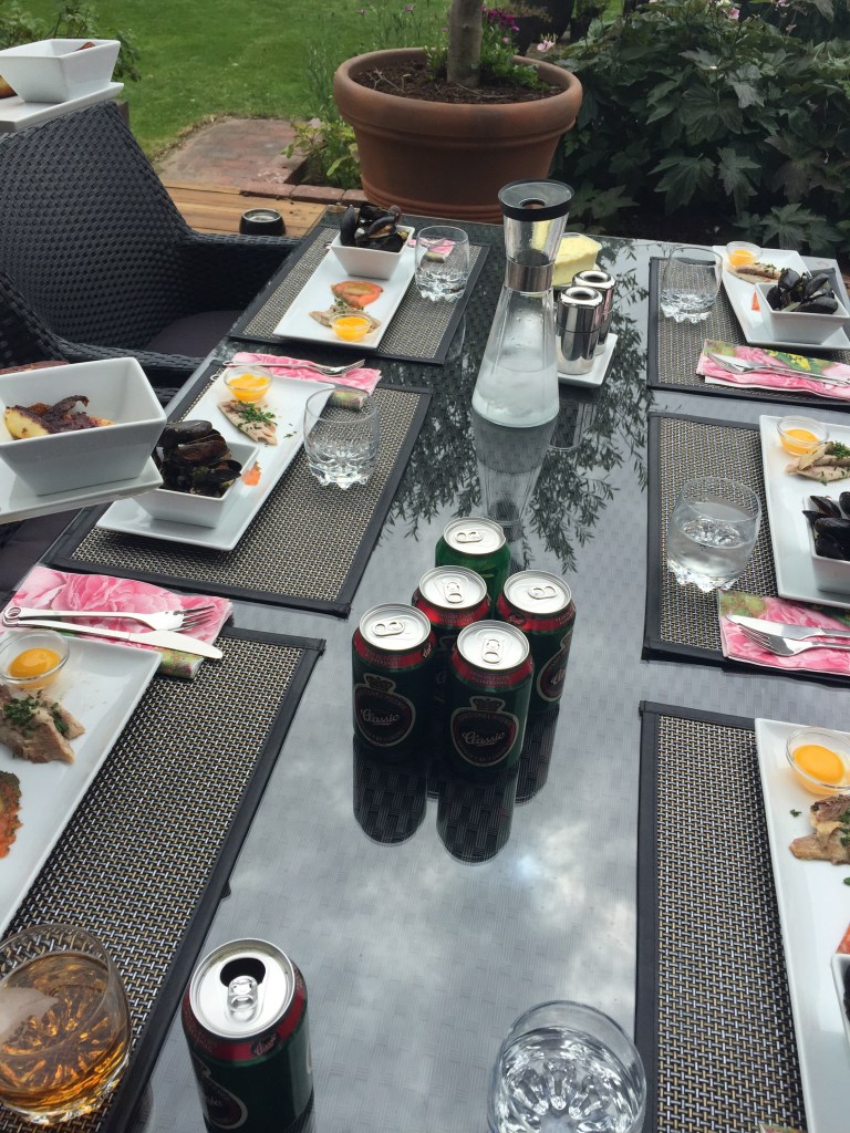 We drive over in the rain to visit Henrik’s cousin Yens and as we arrive we are treated to a demonstration of his new lawn mower, which is a little robot that continually trims the grass. After a short while, the rain stops and we sit out in the garden, watching the robot lawnmower at work, whilst we eat the feast that Yens has prepared for us